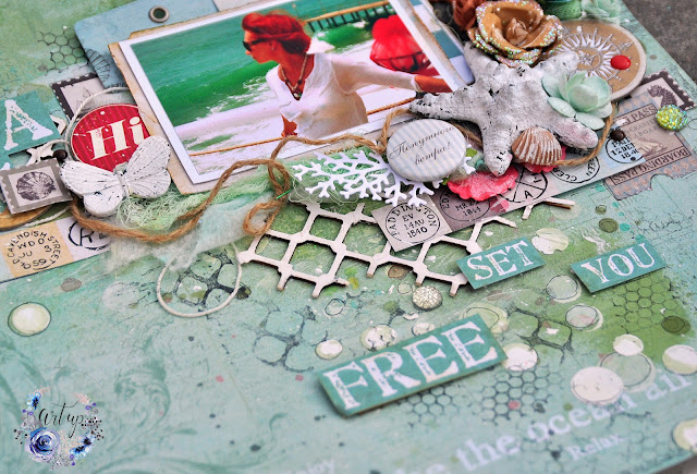 Есть ли смысл описывать, то что я вложила в эту работу... Море, свобода...маяк...дает надежду и указывает путь, бабочка дарит крылья, компас укажет направление, а цветы...цветы это весна и красота и даже фоновый чипборд вполне заменяет морские сети)))