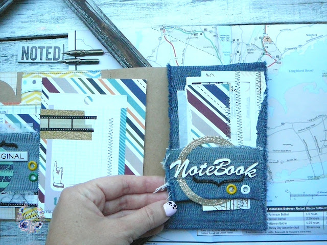 Я планировала сделать четвертый разворот с тетрадочкой для записей. Здесь я использовала джинсовую ткань (старые джинсы). Из этой ткани я сделала карман для тетрадочки. Тетрадочку сшила из листочков а5 (сложила пополам и прострочила на машинке). Быстро и просто!
